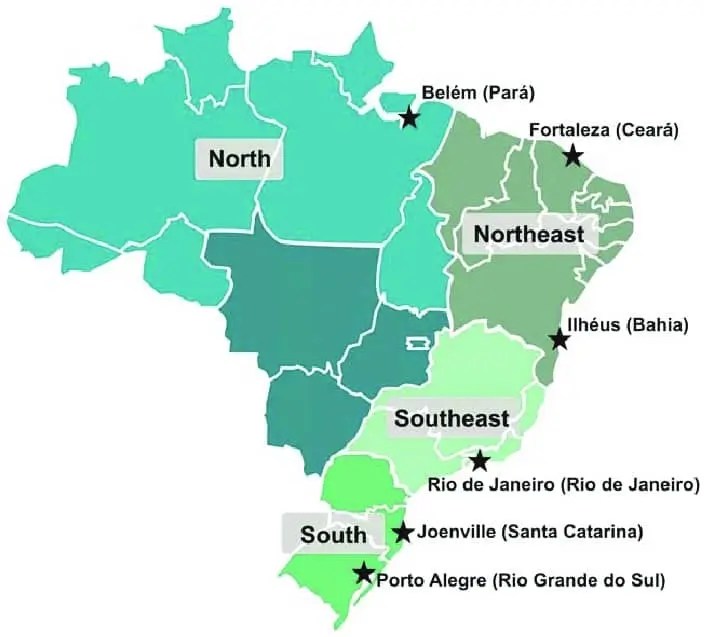 The first political division of Brazil is by region: North, Northeast, Southeast, South and Central